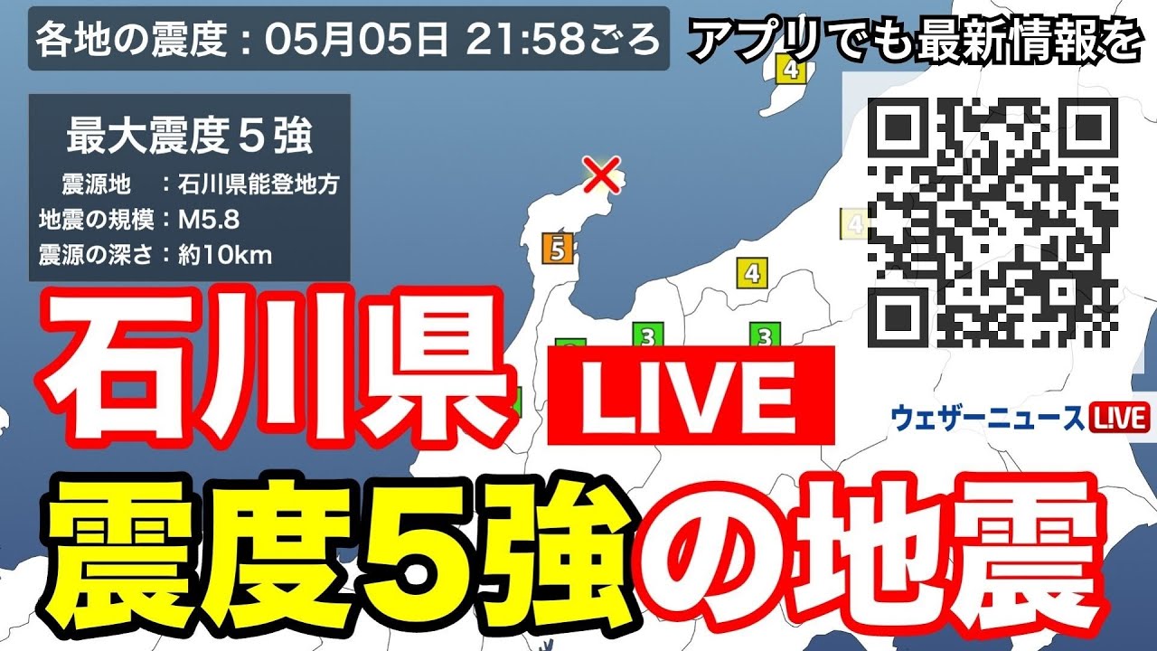 地震速報 石川県で震度5弱の地震発生 津波の心配なし Youtube